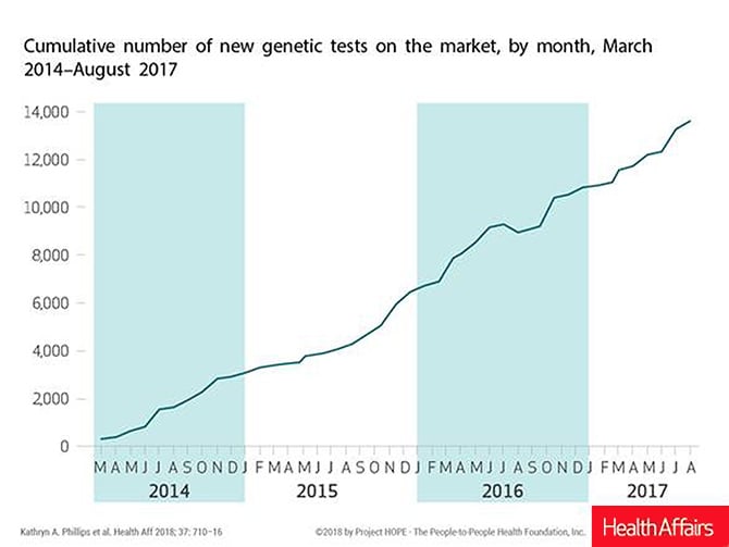 Approximately 75,000 genetic tests are currently on the market and on average 10 more are added each day, according to an analysis published May 7 in Health Affairs.