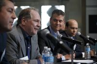Terry Booth speaks at the Toronto Stock Exchange on May 14.