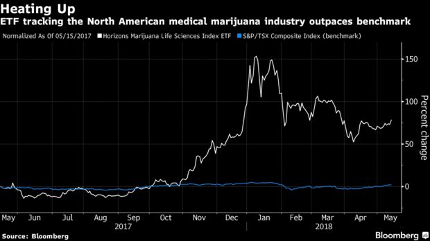 Weed companies are also seeking to capitalize on investor enthusiasm. Share prices for producers have soared over the past year: the Bloomberg Intelligence Canada Cannabis Competitive Peers Index, which comprises 54 companies, has almost doubled in the period and has a market capitalization of $65.4 billion.