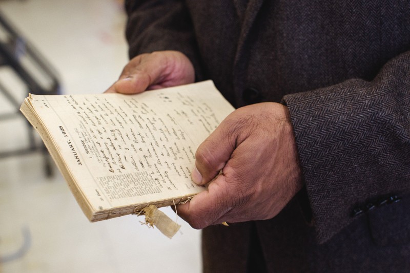 Rao keeps a diary that his grandfather used to track expenses during his time in graduate school.Credit: Rosem Morton for Nature