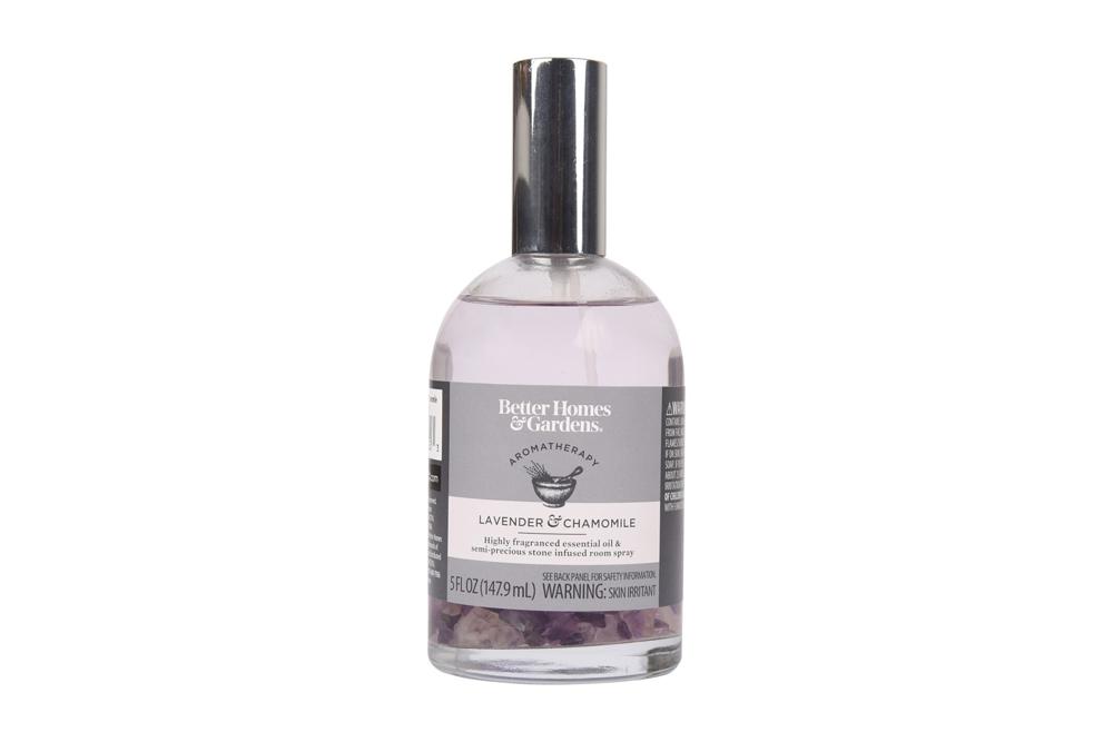 This undated photo provided by Walmart and the U.S. Centers for Disease Control and Prevention shows a bottle of Better Homes & Gardens aromatherapy lavender & chamomile essential oil and semiprecious stone-infused room spray. The Consumer Product Safety Commission and Walmart issued a recall Friday, Oct. 22. 2021, for 3,900 bottles of the spray. (Walmart/CDC via AP)
