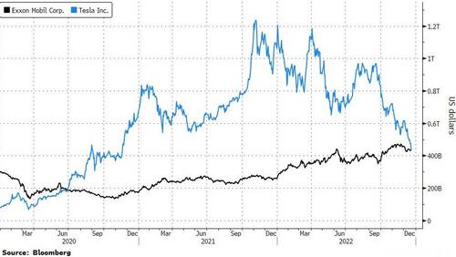 Notably, Exxon is now larger than Tesla for the first time since 2020...