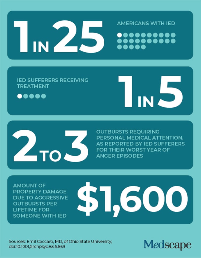 About 1 in 25 (or 13.5 million) Americans have the disorder, said Emil Coccaro, MD, the vice chair of research in the Department of Psychiatry and Behavioral Health at Ohio State University and the recognized world expert on IED.