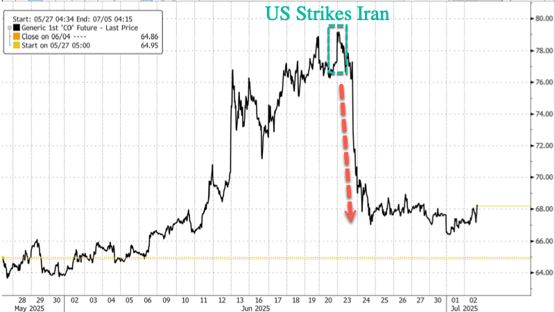 Israel's 12-day war with Iran and Tehran's ultimately hollow threat (so far) to close the Strait of Hormuz appear to have had limited lasting impact on global oil markets, reflected in Brent crude trading around $68 on Wednesday afternoon.