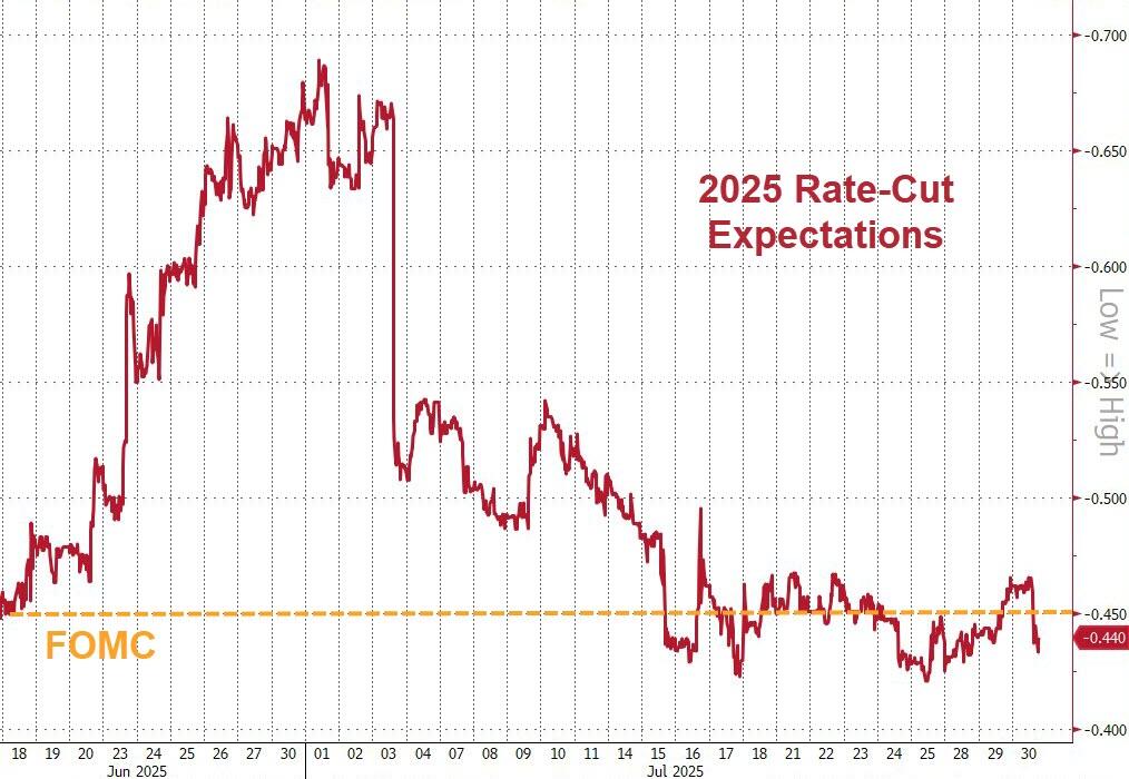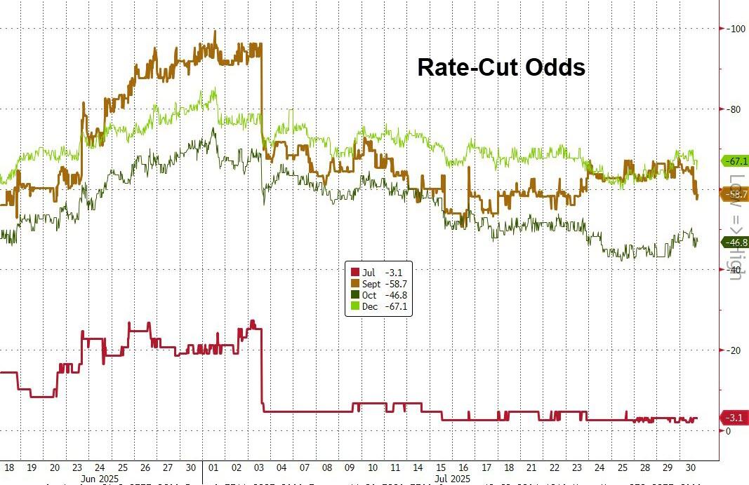 Heading in to today's FOMC decision, expectations were unequivocally for no cut today, with September signaled as better than a coin-toss for the next cut (though those odds were falling into the FOMC statement)...