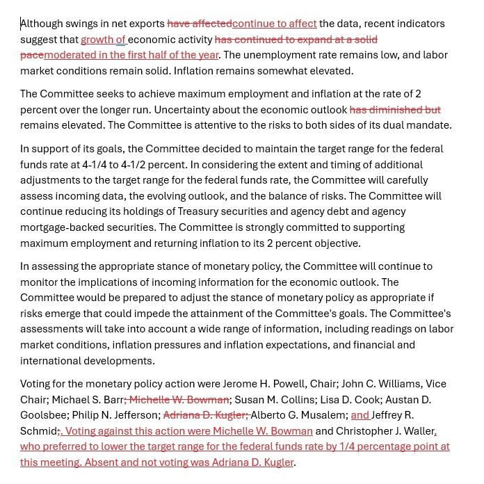 - *FED HOLDS BENCHMARK RATE IN 4.25%-4.5% TARGET RANGE