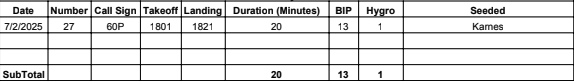 Here are the flight logs for July from our South Texas Program