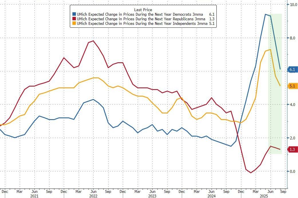 We have no idea what the fuck is going on with this elevated inflation expectation all three political cohorts saw one-year inflation expectations decline...