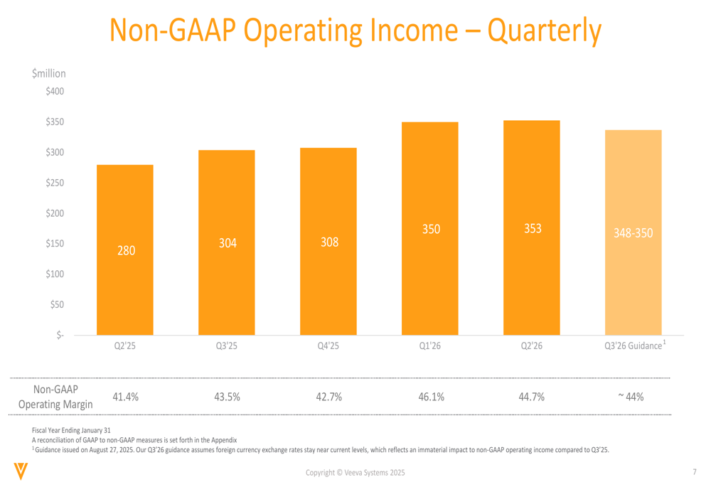 The quarterly operating income trend demonstrates Veeva’s ability to scale efficiently: