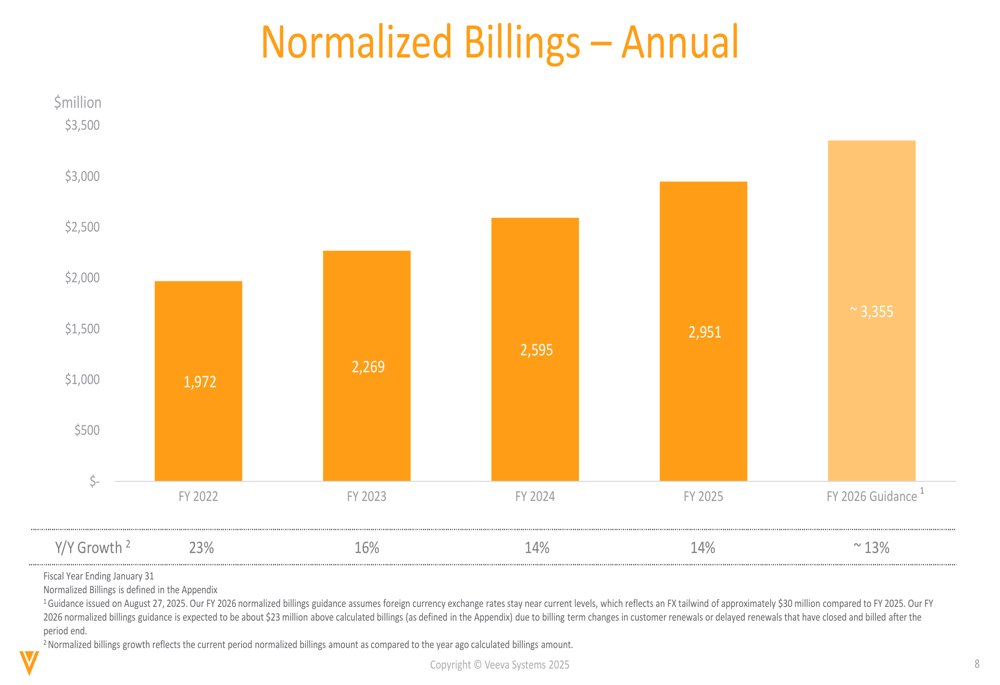 Normalized billings, an important forward-looking indicator of business momentum, are expected to reach approximately $3.36 billion in FY 2026, representing about 13% year-over-year growth.