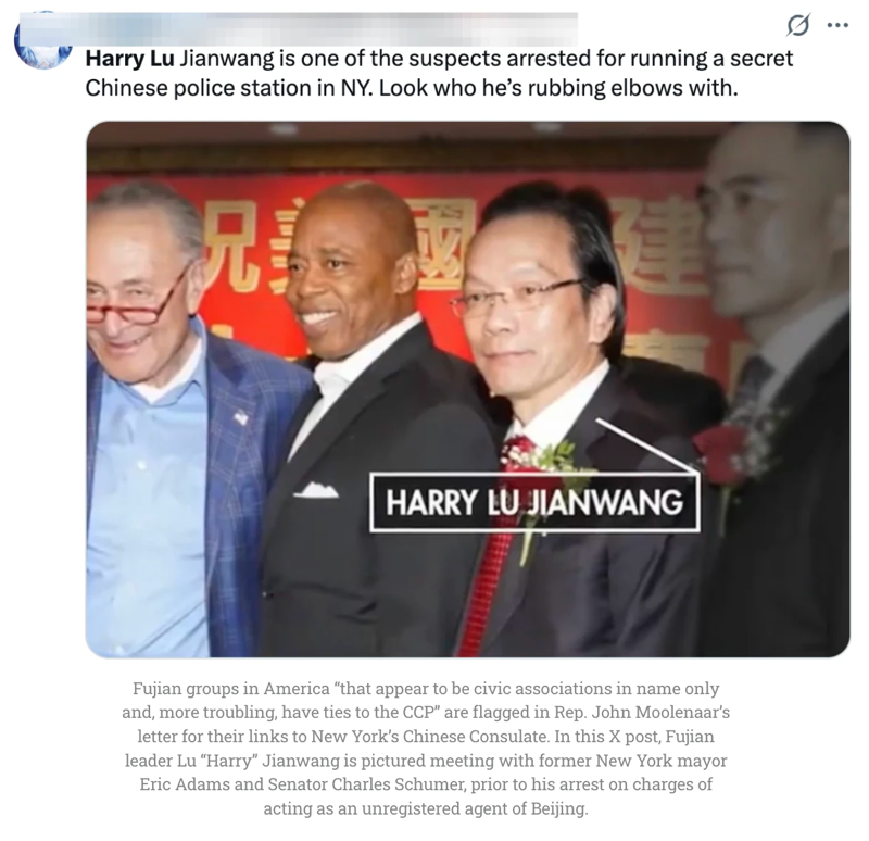 Probes involving a Fujian community association in the Toronto area and alleged CCP "police stations" have not resulted in charges, but parallel U.S. Department of Justice filings in New York reveal that a Fujian community leader from Toronto was documented meeting with groups later tied to a CCP police station case that led to charges against Lu "Harry" Jianwang, a New York–based Fujian community leader.