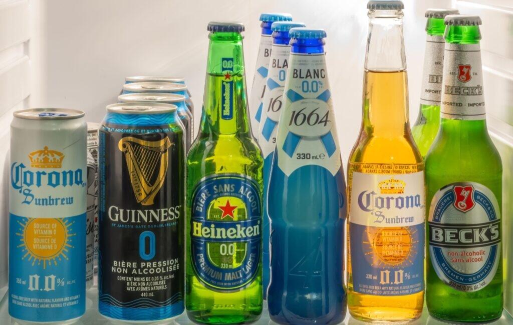 Alcohol-free offerings from several well-known beer brands.