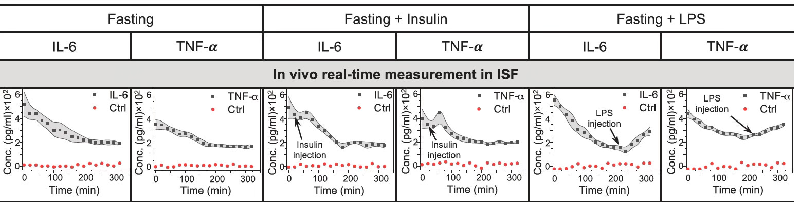 Professor Shana Kelley and colleagues at Northwestern University published in Science an ingenious continuous, real-time sensor that used DNA strands to bind tightly to any protein circulating in the body, and electricity to get the protein off and assay it. Those of you who have tried continuous glucose monitoring (CGM) will know well how this works, applying the sensor just under the skin to sample interstitial fluid, then relaying your data to your smartphone. CPM was demonstrated in the diabetic rat model for tracking inflammation markers of interleukin-6 and tumor necrosis factor (Figure below, LPS is lipopolysaccharide). Last week I had a conversation on Ground Truths with Prof Kelly about this important discovery that has implications for prevention across many diseases (cardiovascular, autoimmune, neurodegenerative). She and her team have a review paper that will be published later this month that lays it all out and is outstanding.
