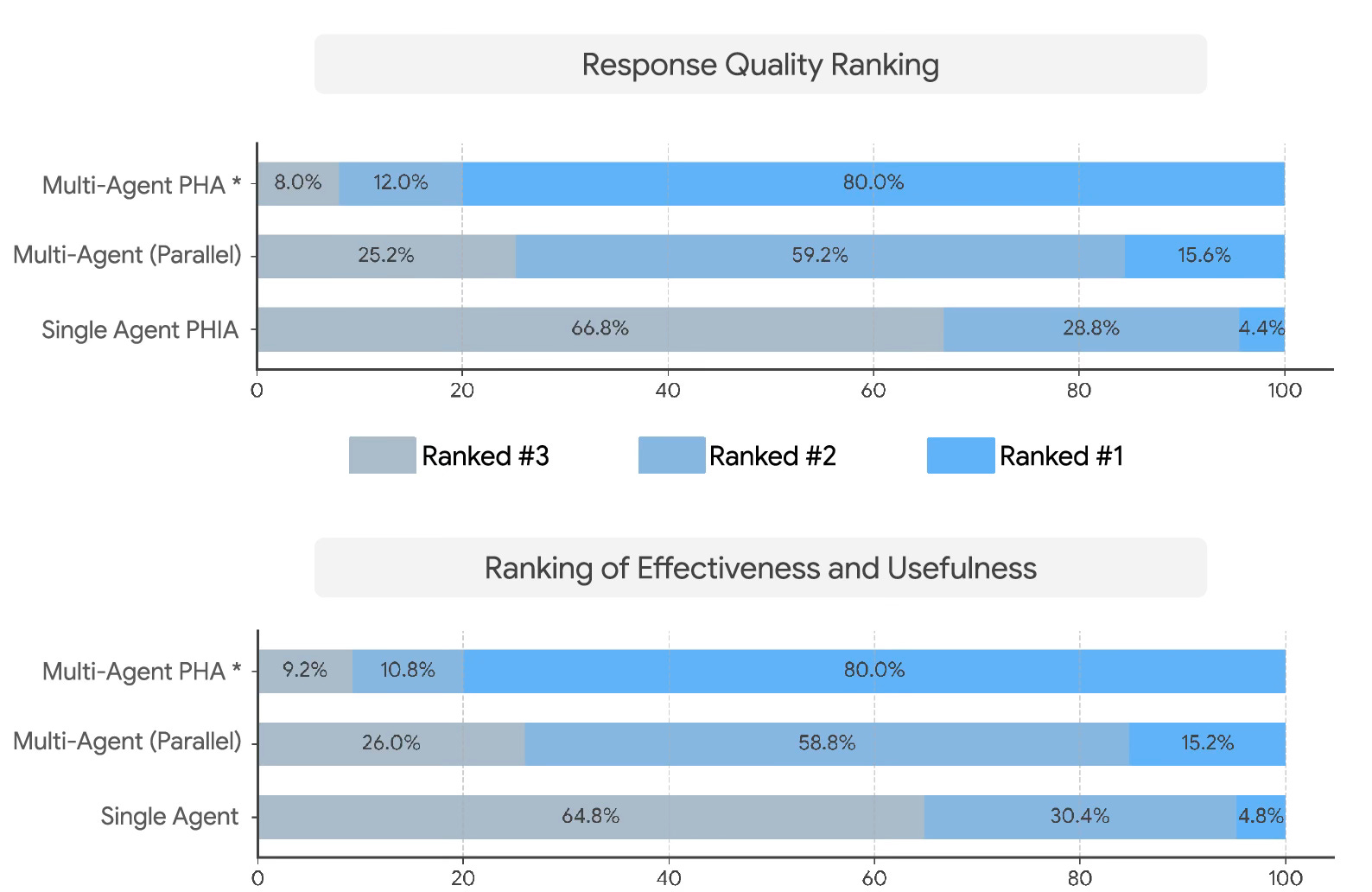 Experts ranked the PHA as the best quality and most effective system for helping users achieve their goals in 80% of cases compared with 4% for a single-agent or 15% for a non-orchestrated multi-agent parallel system.