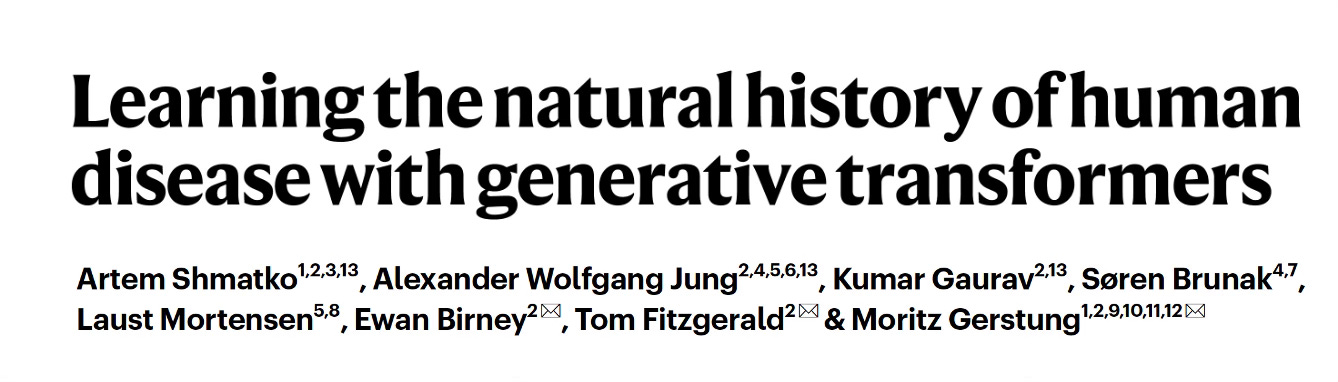 What if an individual’s arc of health events was like a sentence, a sequence whereby you could predict the next condition like you would with a transformer architecture A.I. autocompletion of words (hopefully a helluva lot better that we have now on our phones!)? That is the essence of generative A.I.’s power for text, using tokens of words (and word fragments) with extraordinary contextualization, giving it the ability to write high quality text, even books. Delphi-2M is a transformer, large language model (GPT-2 derived) learning the language of human health, that does exactly that but the tokens are based on diseases, sex, lifestyle and other related factors. It was built from the records, with long-term follow up, of 400,000 participants in the UK Biobank and externally validated in the Denmark population of 1.9 million people. Despite the participants in the UK Biobank being much younger, there was almost no difference in the Delphi-2M’s model performance for predicting diseases without any change in the parameters of the model. The input data included hospitalizations, primary care visits, self-reported information, and death registries.