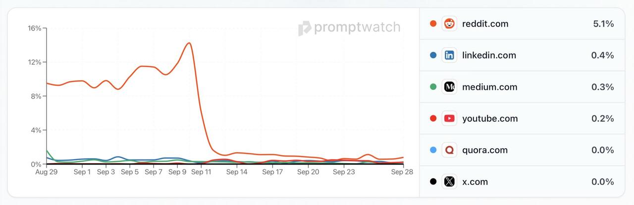 Apparently ChatGPT is not using Reddit much anymore for their answers. I guess they realized that what random people say can't be considered a trusted source after all. You can all stop spamming it with your fake brand mentions now.