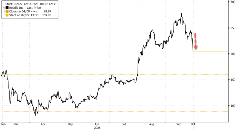 Reddit shares dropped as much as 13% in premarket trading. If losses hold through the cash session, this would mark the largest decline since early March.