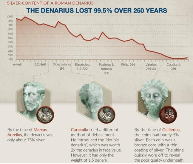 Eventually (over a period of about 250 years), this resulted in a Denarius with zero silver content.