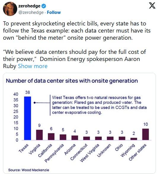 One day after we observed that only a boom in onsite, "behind the meter" power supply energizing America's hundreds (soon thousands) of data centers - i.e., small/micro modular reactors or gas tubines not connected to the broader power grid - would allow the US to dominate the AI "arms race" between Washington and Beijing without sending electric bills skyrocketing...