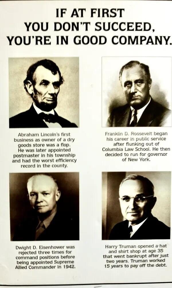 I saw the cultural difference again when my children entered New York’s public schools. The system was far from perfect even back then, but I remember walking the hallway and seeing a poster of U.S. presidents listing not their successes but their failures. The message was simple: failure is part of the journey. Everyone falls before they rise. I remember thinking: This is what I want my children to learn. I took a quick photo of that poster and shared it with Australian friends as one of many examples of positive American life. I’ve kept that image till this day.