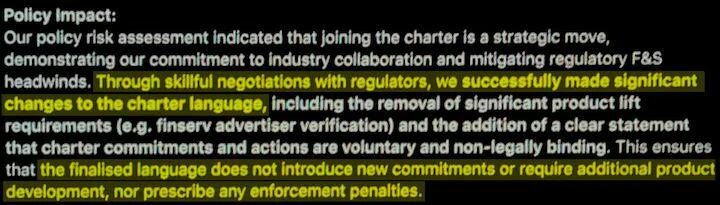 Hong Kong is another example - where Meta lobbyists moved quickly in 2024 to blunt a proposal by financial regulators that would have required verification of advertisers promoting investment products. To preempt stricter rules, Meta staff helped regulators draft a voluntary “anti-scam charter” and coordinated with Google to present what one lobbyist described internally as a “united front.” The final language, the documents note, imposed no new verification requirements or product changes. In an internal message celebrating the outcome, a Meta lobbyist wrote that regulators had relaxed measures that would have forced identity checks for financial advertisers, adding that officials expressed “huge appreciation” for Meta’s participation. Hong Kong regulators later said advertiser verification was only one of several tools available to platforms and emphasized that they lacked authority to mandate such requirements, while urging social media companies to do more to detect and remove fraudulent content.