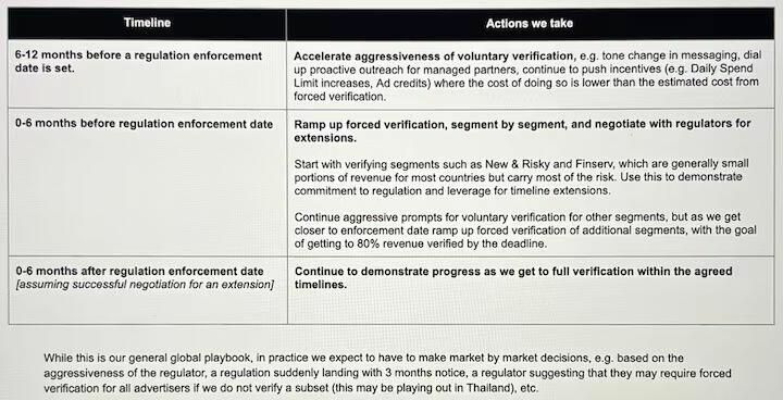 Instead of adopting verification, Meta chose what documents describe as a "reactive only" stance, accepting universal verification only where mandated by law.