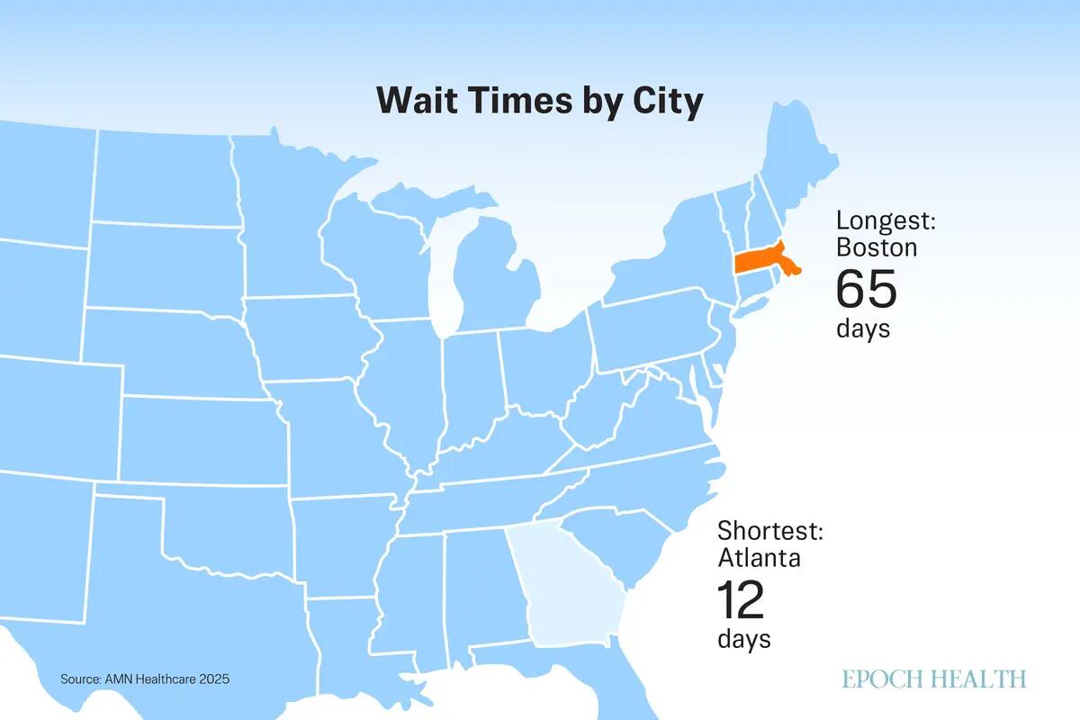 The problem continues to grow. A 2025 survey by AMN Healthcare found the average wait for a physician appointment in major metro areas has stretched to 31 days—up 19 percent since 2022 and nearly 50 percent since 2004. In Boston, patients wait more than two months, the longest wait time in the nation.