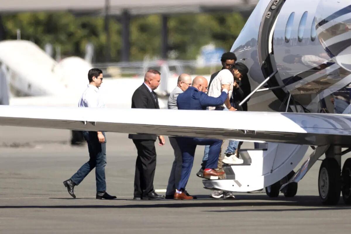 Harjinder Singh is escorted onto an airplane by Florida Lt. Gov. Jay Collins and law enforcement in Stockton, Calif., on Aug. 21, 2025. Benjamin Fanjoy/AP Photo