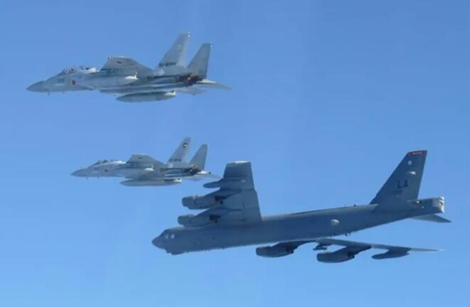 The flight included a pair of US B-52 bombers, escorted by Japanese F-35 stealth fighters and three F-15 jets. Beijing had presented the prior, longer flight as routine and in accord with international law.
