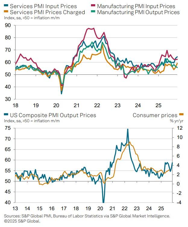 Higher prices are again being widely blamed on tariffs, according to Williamson, with an initial impact on manufacturing now increasingly spilling over to services to broaden the affordability problem.