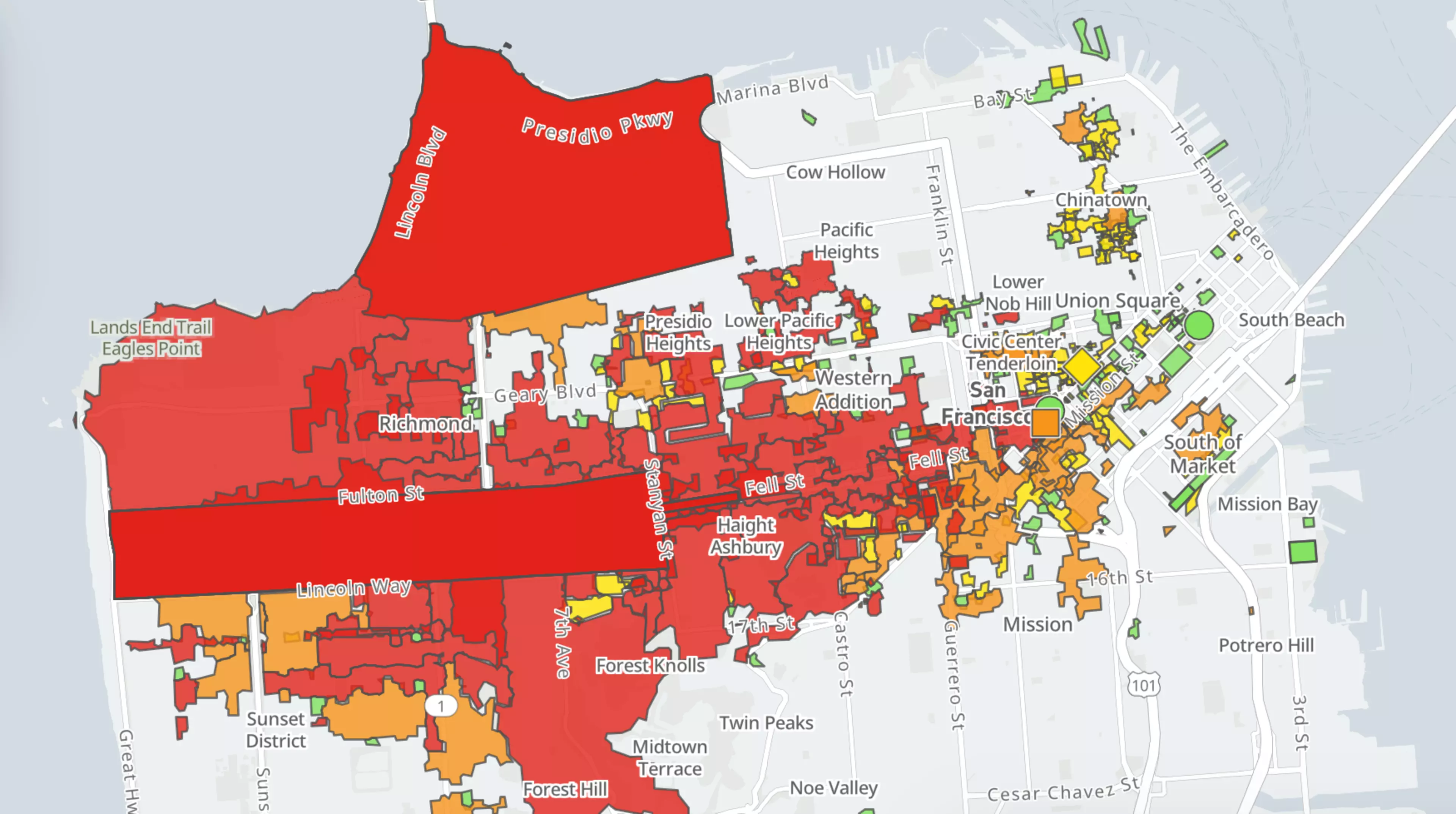 125,016, or 30.2%, of Pacific Gas and Electric customers are without power(opens in new tab), according to the utility. Neighborhoods affected include the Sunset and Richmond Districts, along with Haight-Ashbury, Pacific Heights, and the Presidio.