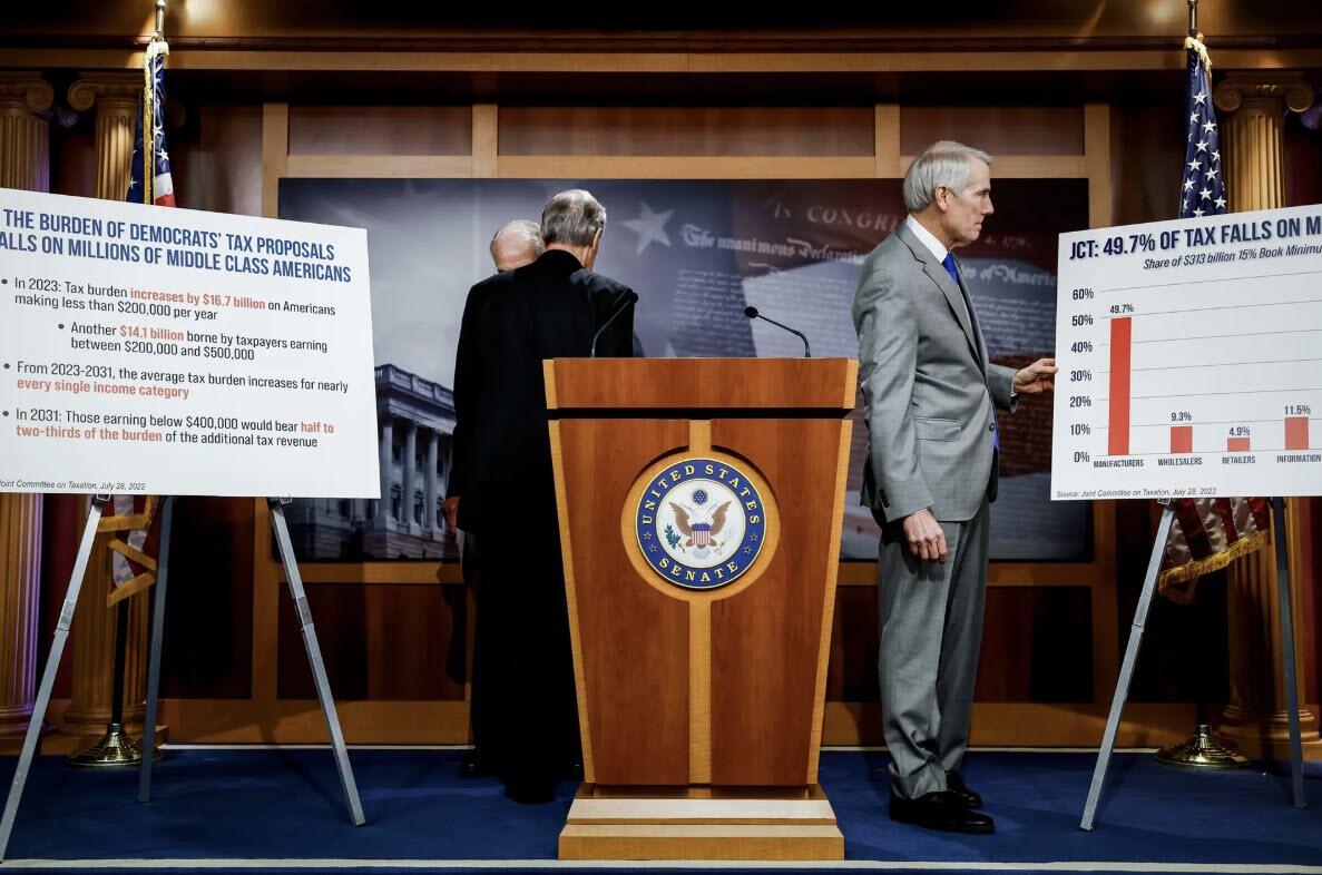 (L–R) Sen. Chuck Grassley (R-Iowa), Sen. Mike Crapo (R-Idaho), and Sen. Rob Portman (R-Ohio) speak at a press conference at the U.S. Capitol on Aug. 3, 2022. While most Republicans opposed extending the enhanced Obamacare subsidies, some supported a second short-term extension of one to three years. Anna Moneymaker/Getty Images