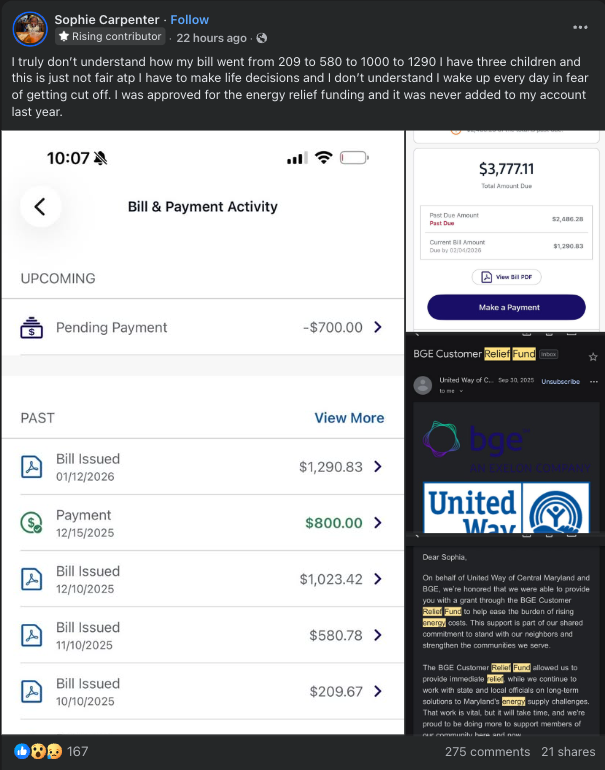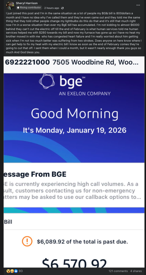 The panic is real in Maryland. Working-class folks are drowning in power bill debt.