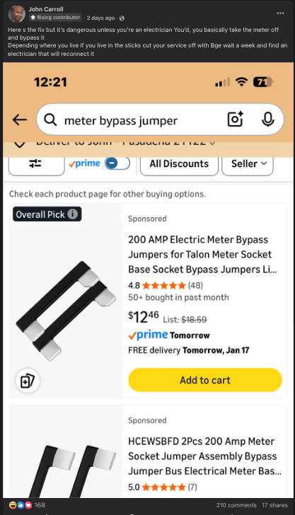 Some residents are instructing folks how to bypass meters to get free power. That's how bad the power crisis is in Maryland.