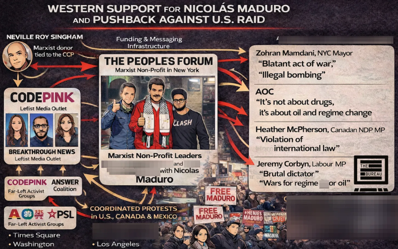 Within hours of the Trump administration's surprise extraction operation in Venezuela, commentary surrounding President Nicolás Maduro's arrest for alleged narco-state conspiracies metastasized into something Trump's war cabinet could not control with stealth helicopters, radar jamming, or the world's most effective special forces units: a narrative war in support of Maduro, waged at internet speed by organizations that already had templates, coalitions, and street logistics in place — and that have demonstrated well-oiled campaigns in support of causes such as Hamas, the Iranian regime, and China's geopolitical aims in recent years.