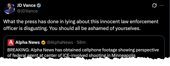 Vice President JD Vance commented on Alpha News' report, saying, "What the press has done in lying about this innocent law enforcement officer is disgusting. You should all be ashamed of yourselves."