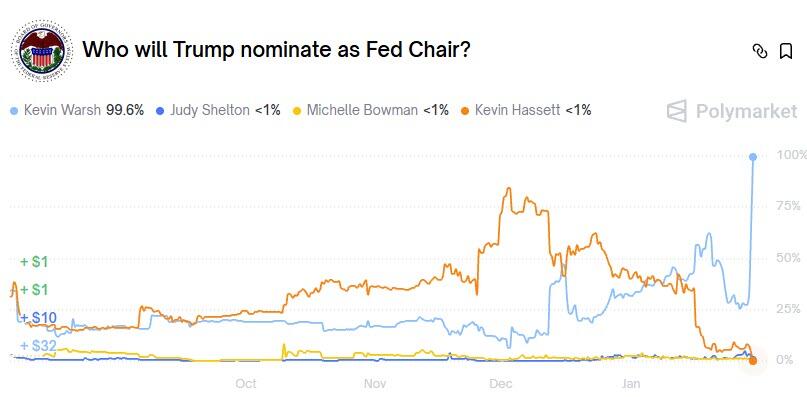 And less than an hour later Warsh is at 83%, on a journalist tweet that "Trump is leaning toward KEVIN WARSH to replace Jerome Powell, I'm told." https://t.co/ymwoiXHD9F pic.twitter.com/dOf7WXjBFl
