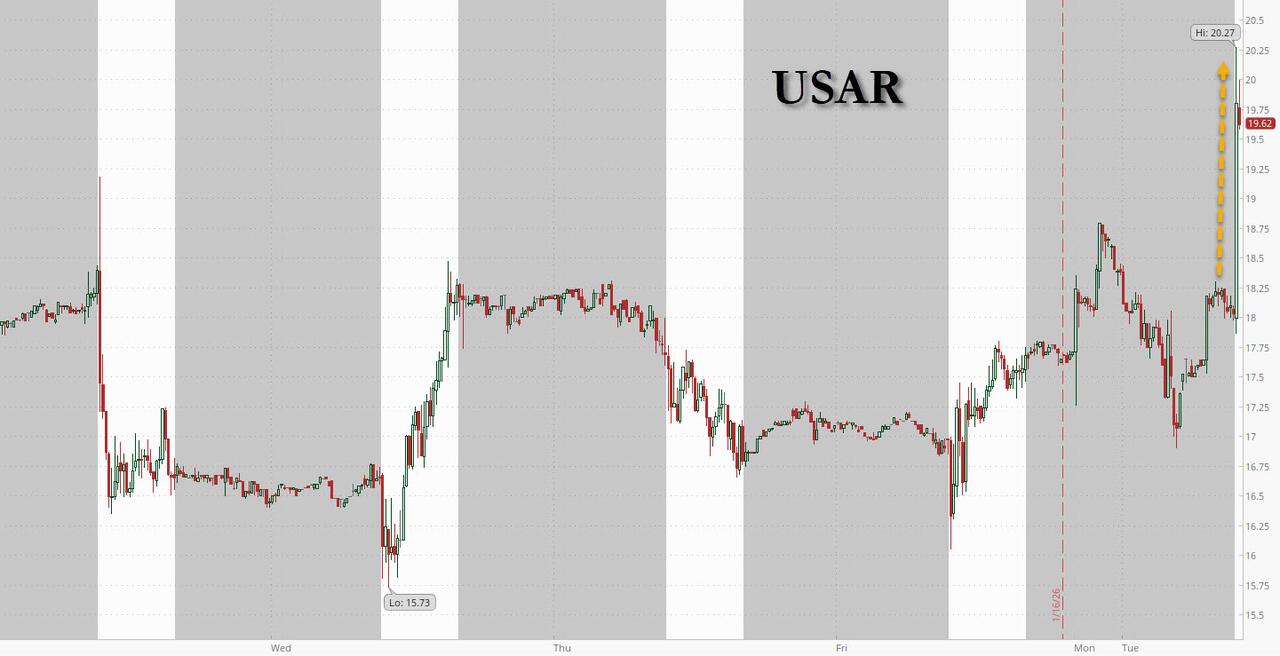 USA Rare Earth (USAR), a US-based (duh) rare earth miner, refiner and processor, which for much of the past year lived in MP Minerals' shadow amid expectations that it too will receive government generosity, surged on Tuesday on news that it will build a facility in Lacq, France, capable of producing 3,750 metric tons per year of rare earth metals and alloys; and while it will finally get government funding, the source is not the US but the French government, which doesn't matter: in a time when China is cracking down on all rare earth exports, anyone who can provide alternatives will benefit no matter where they are located.