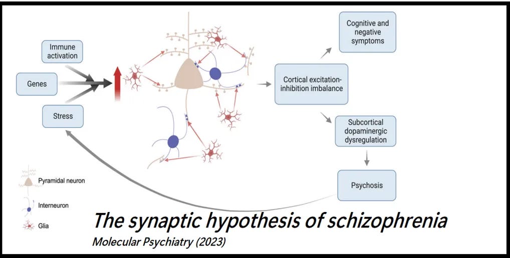“Schizophrenia, which often emerges in late adolescence, illustrates how dysregulated synaptic pruning -- a process refining neural connections -- can alter brain function, potentially triggered by environmental factors like infections or toxins.”