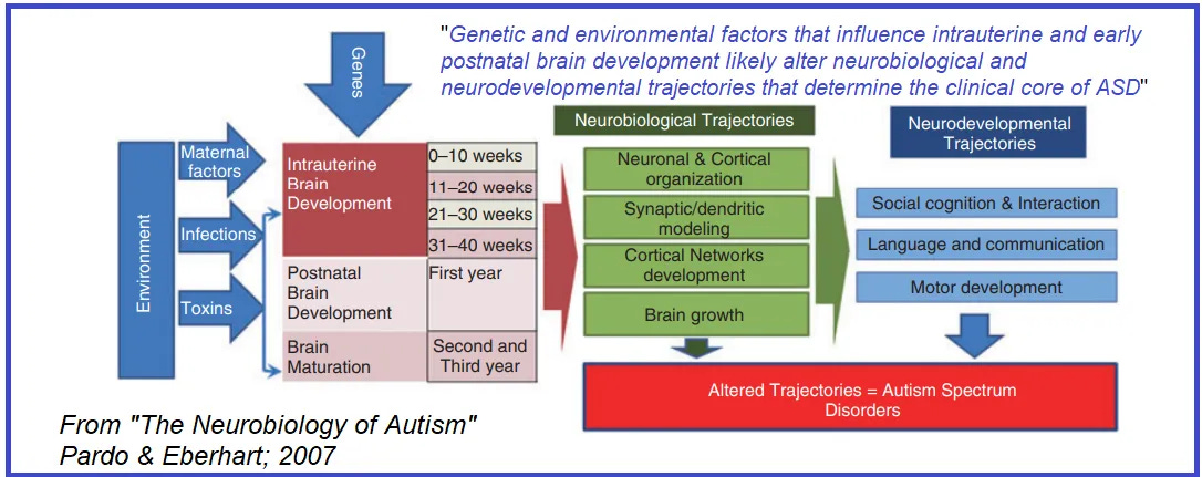 This does not exclude environmental influences. Epigenetic modulation, prenatal exposures, perinatal stressors, and early-life conditions can all shape expression. But they act on a pre-existing architecture. The evidence to date supports a model in which much of autism is, as you put it, “baked in the cake,” with variability in when and how it declares itself.