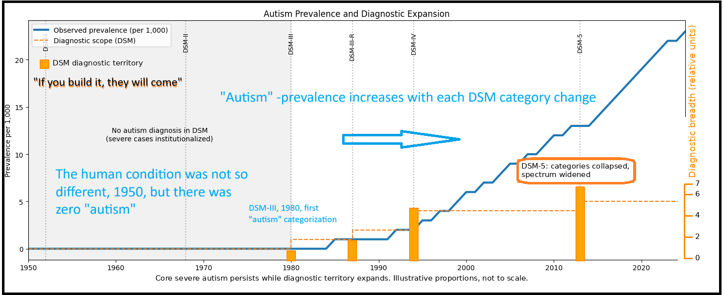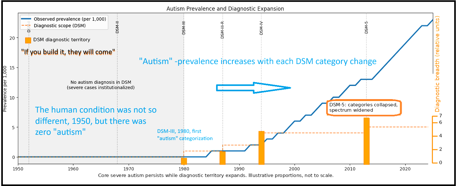 Treating these eras as equivalent and inferring a single cause commits a category error. Sequence matters. Definition precedes causation. Without clarifying what is being counted, prevalence curves mislead. From my Unraveling Autism’s Surge: