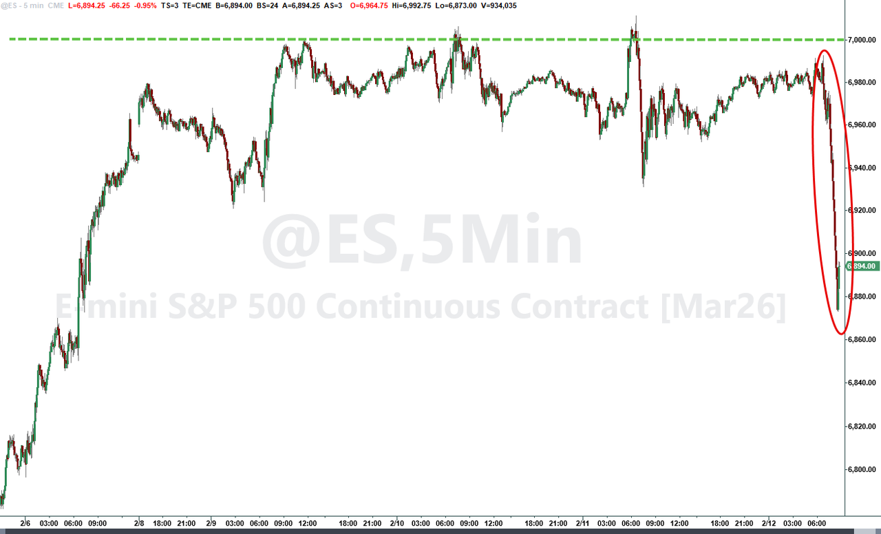 Indeed, according to traders, the ongoing "AI scare trade" is weighing on sentiment and has pushed the S&P sharply lower...