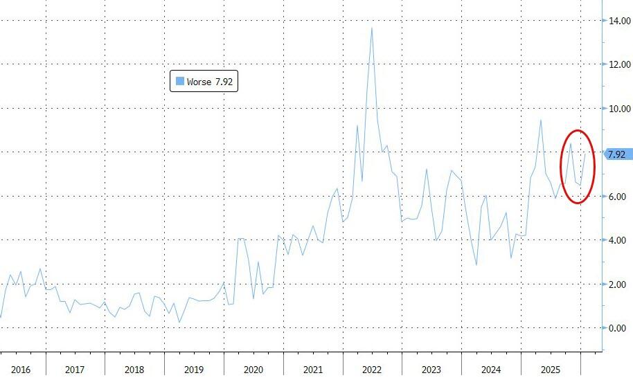 Year-ahead expectations about households’ financial situations also deteriorated with a smaller share of respondents reporting that their households expect to be better off a year from now and a larger share reporting they expect to be worse off.