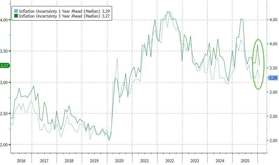 Additionally, median inflation uncertainty - or the uncertainty expressed regarding future inflation outcomes - decreased at the one-year and three-year-ahead horizons and increased at the five-year-ahead horizon.