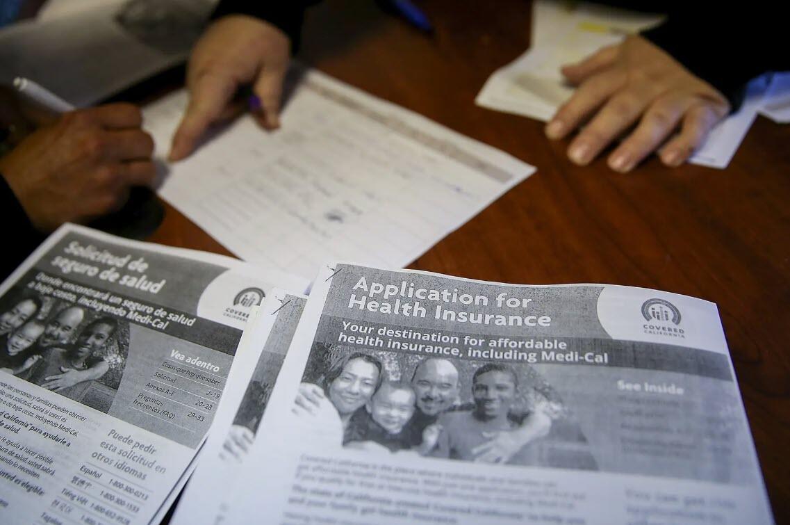 Informational pamphlets are displayed during a health care enrollment fair in Richmond, Calif., on March 31, 2014. Health insurance premiums have more than doubled since Obamacare began in 2014, rising twice as fast as inflation. Justin Sullivan/Getty Images