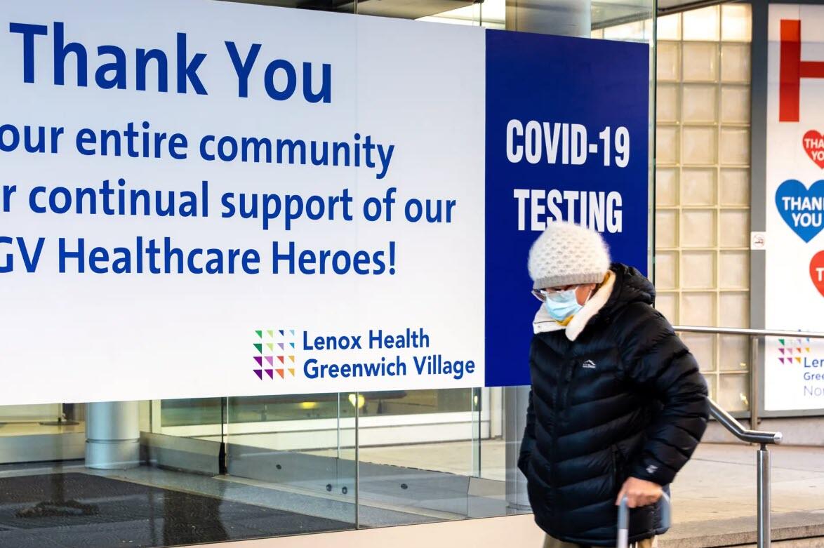 A woman wearing a face mask walks past a COVID-19 test site in Manhattan, N.Y., on Nov. 2, 2020. Chung I Ho/The Epoch Times