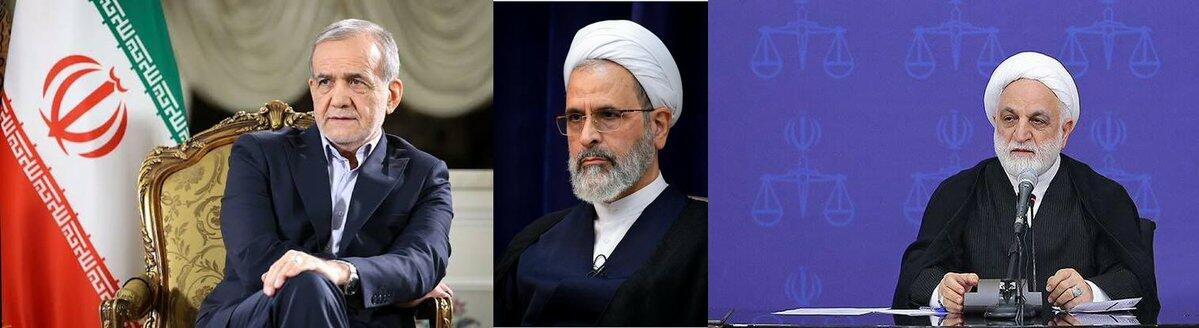 Iran's interim leadership council: President Masoud Pezeshkian, member of the Guardian Council and Assembly of Experts Ayatollah Ali Arafi, Head of Judiciary Gholam-Hossein Mohseni-Ejei