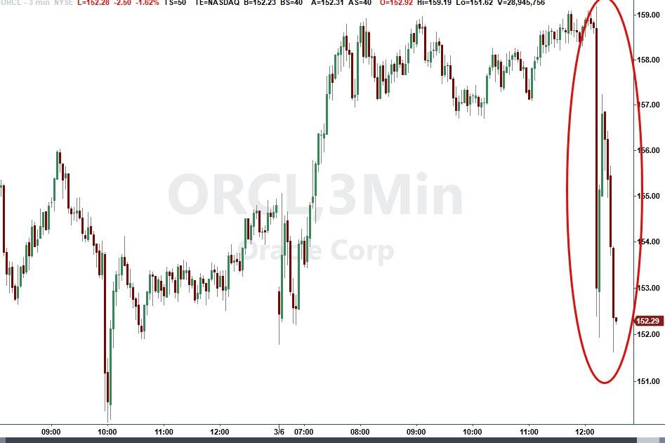 The report erased all of Oracle's intraday gains within minutes.
