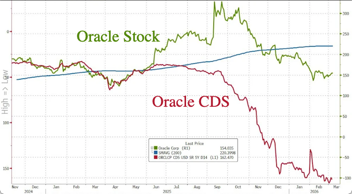 Separately, Oracle previously disclosed its largest-ever restructuring plan, up to $1.6 billion in the fiscal year ending May (including severance). That disclosure helped push ORCL CDS wider, and the spread has since blown out to its widest level since the 2008 financial crisis.