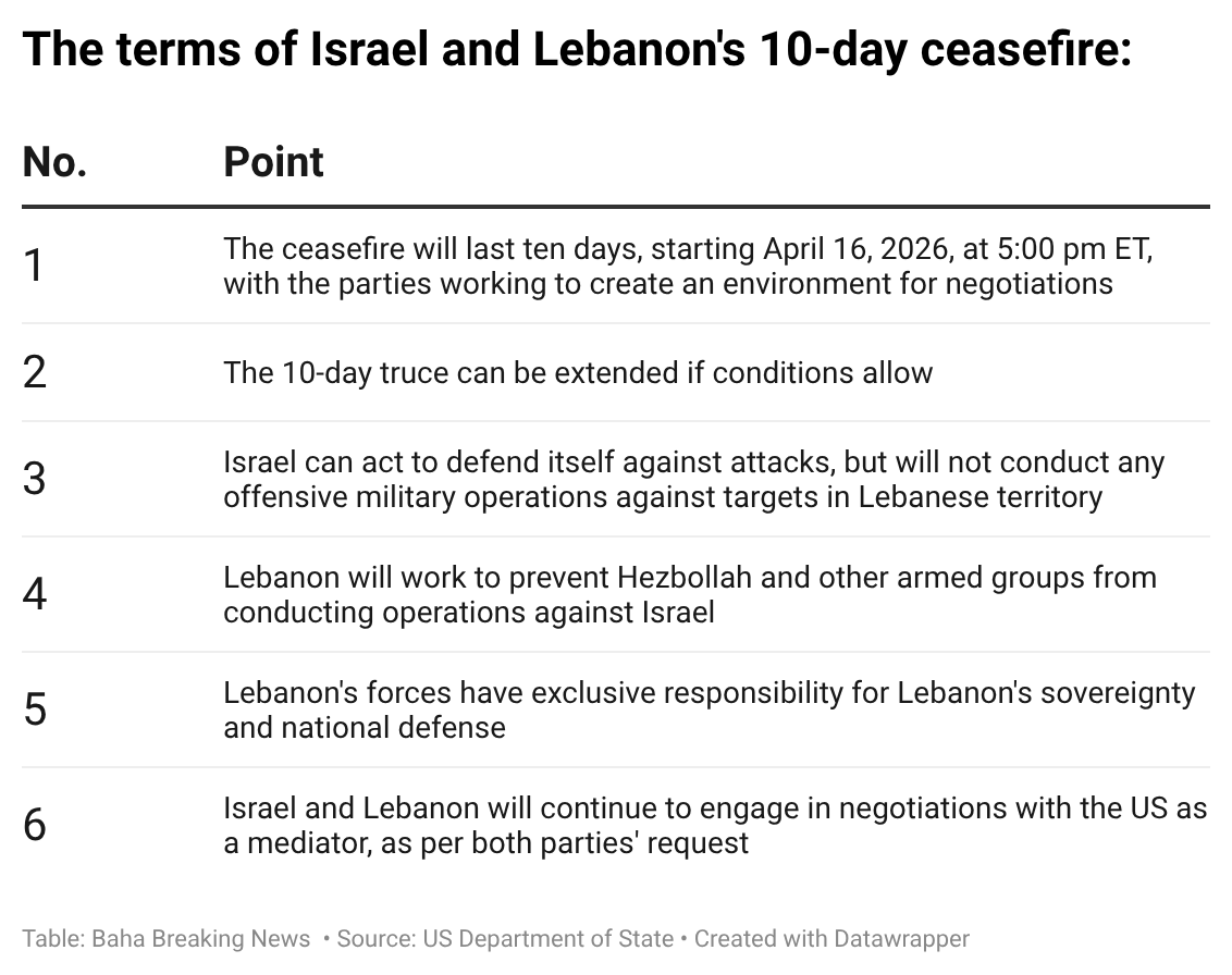 The United States Department of State issued on Thursday the full text of the 10-day ceasefire deal that Israel and Lebanon agreed on.